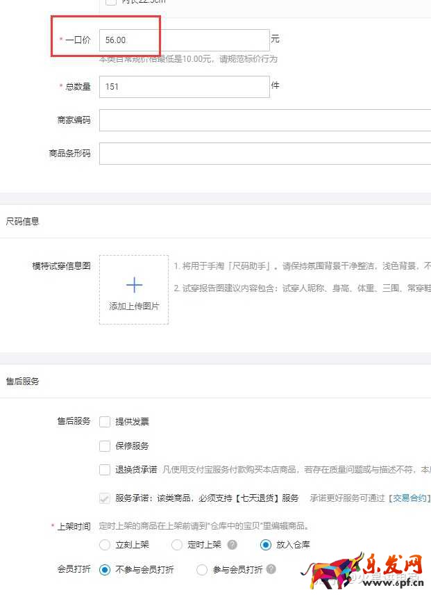 由于供應商在1688上架產品的時候主要是針對賣家統一設置的,你發布到淘寶的草稿箱之后還需要重新優化一下,比如我舉例的這個產品代銷價是59元,快遞費是5元,我們的代銷成本價就是64元,但是發布到淘寶草稿箱默認的一口價是56元包郵,如果我們不改價,直接上架銷售,我們不但不賺錢,還要虧本。